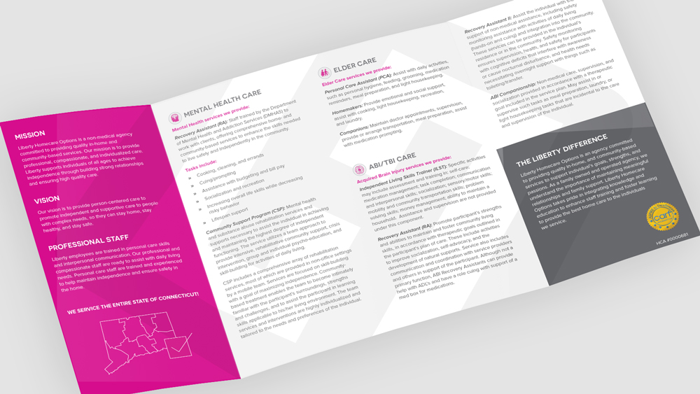 Liberty Homecare Options is a non-medical, accredited Connecticut homecare agency providing exceptional in-home and community-based services to individuals with complex needs, but struggling with an unexceptional image. They came to us looking for a complete rebrand, wanting their brand appearance to reflect the high quality of their care to potential clients, staff, and referral networks.